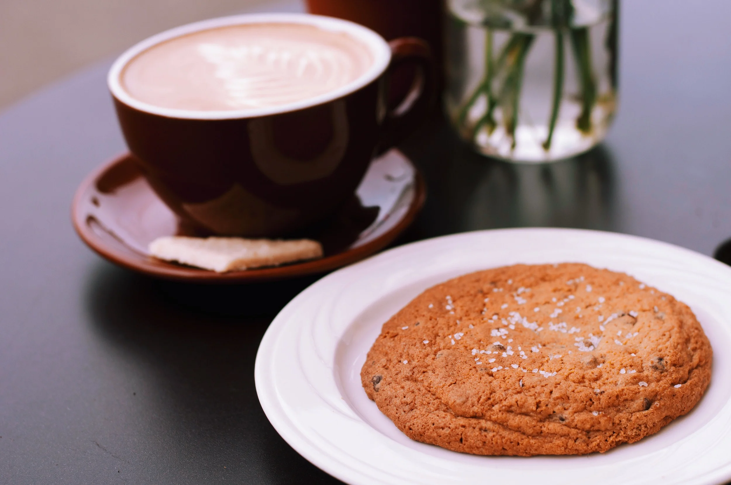 Although we have been here often (this was actually where we first started designing our website), we always gravitate toward a latte or flat white (for him) and a tea (for her - where else do you get to keep your tea leaves in case you want to steep them again?). For food, you really can't go wrong, but the salted chocolate cookie is particularly good. And for those of you who still think gluten free items must equal bland, the ingredients of our favourite cookie are as follows: butter, a blend of gluten free flours, organic evaporated sugar, coconut, dark chocolate, and sea salt.