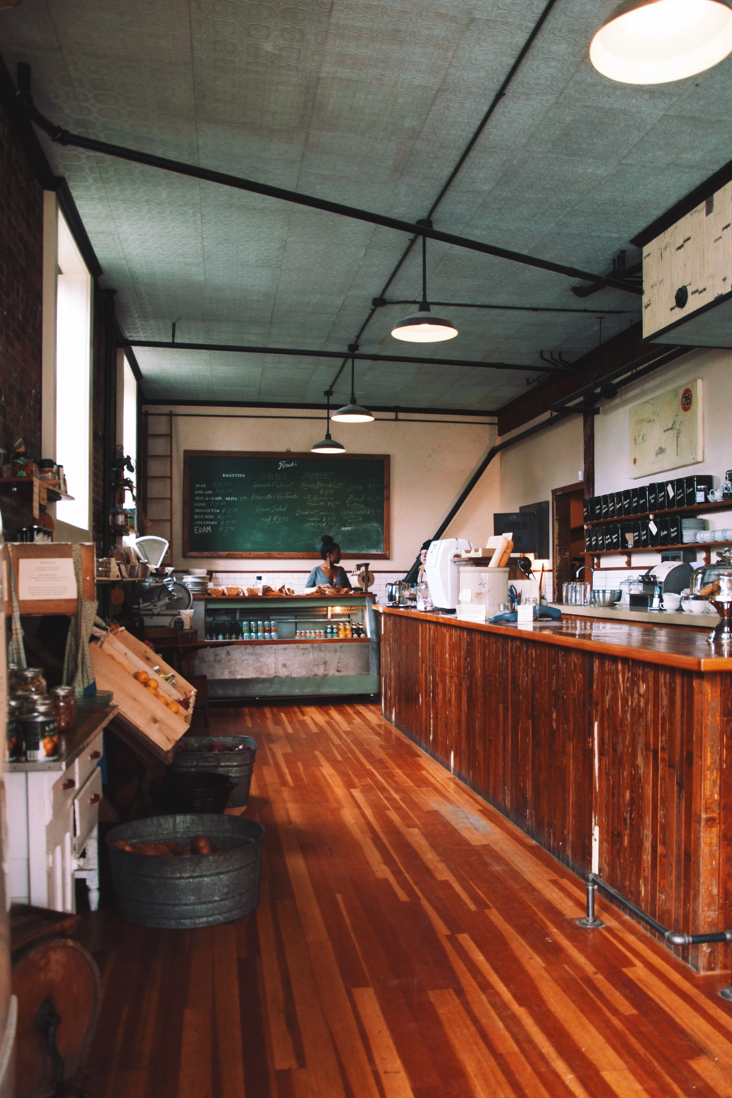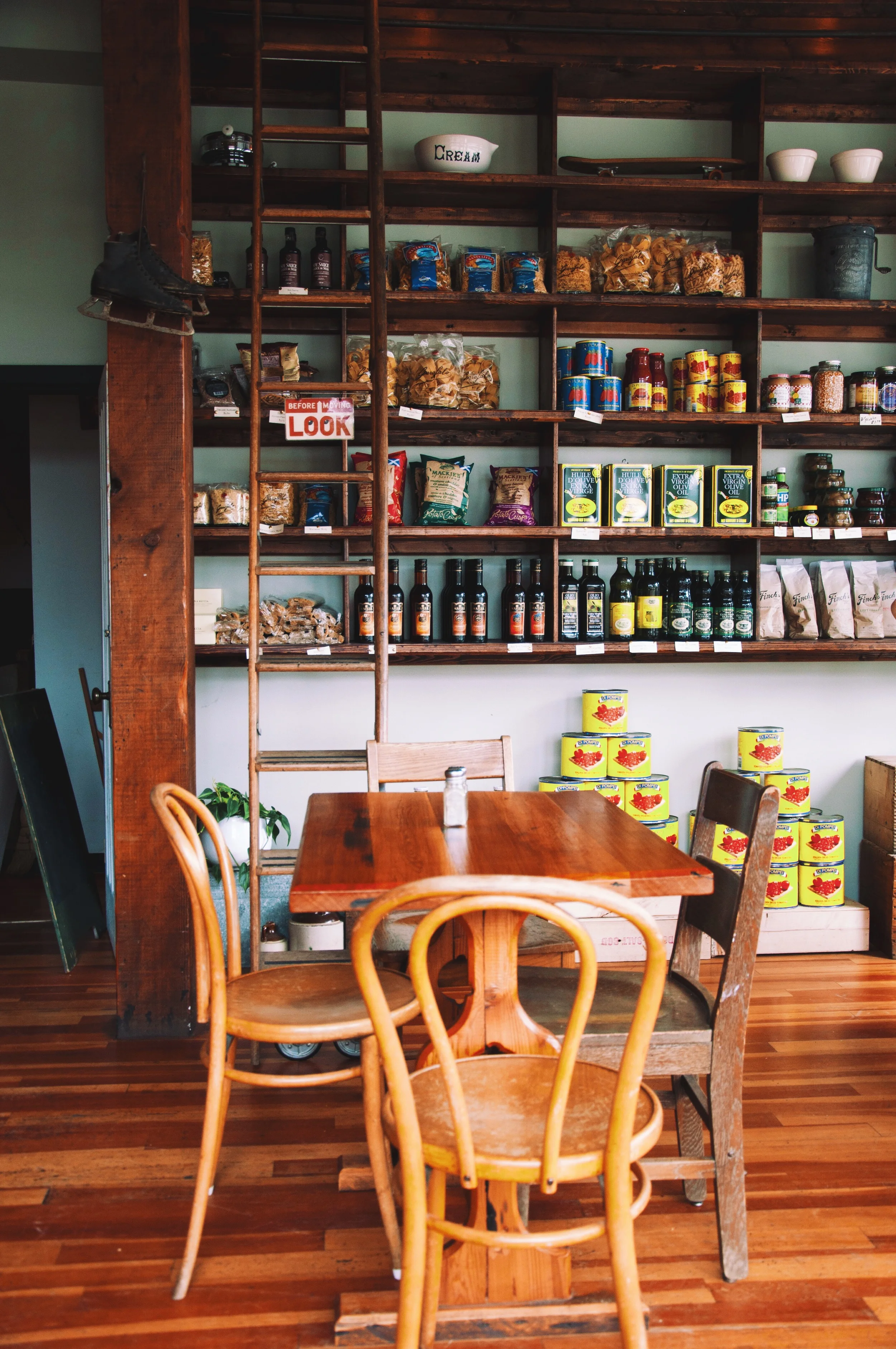 It's located deep in Strathcona, on a quiet, unsuspecting residential street. Walking in is like stepping back in time, with its exposed beams, wooden shelves stocked with jars and cans, and long wooden counter. The food is fresh, unique, and thoughtfully prepared. And if you happen to have run out of milk at home, don't worry, they sell that too.