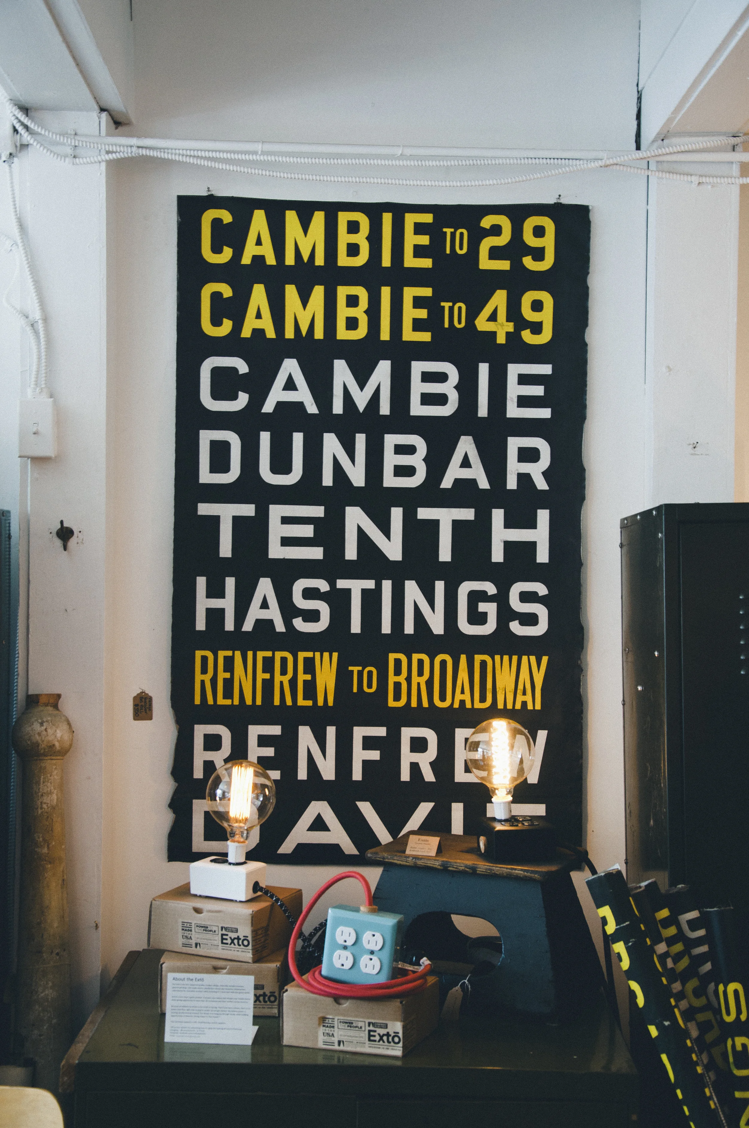 The store's pièces de resistances are the transit scrolls salvaged from Vancouver's busses. The roles have been cut to manageable (and displayable) sizes, with seven or eight stops per piece. In an age where everything is going digital, it's nice to have a piece of Vancouver's history (especially if you can remember the bus drivers rolling the scrolls as they came to the end of the line).